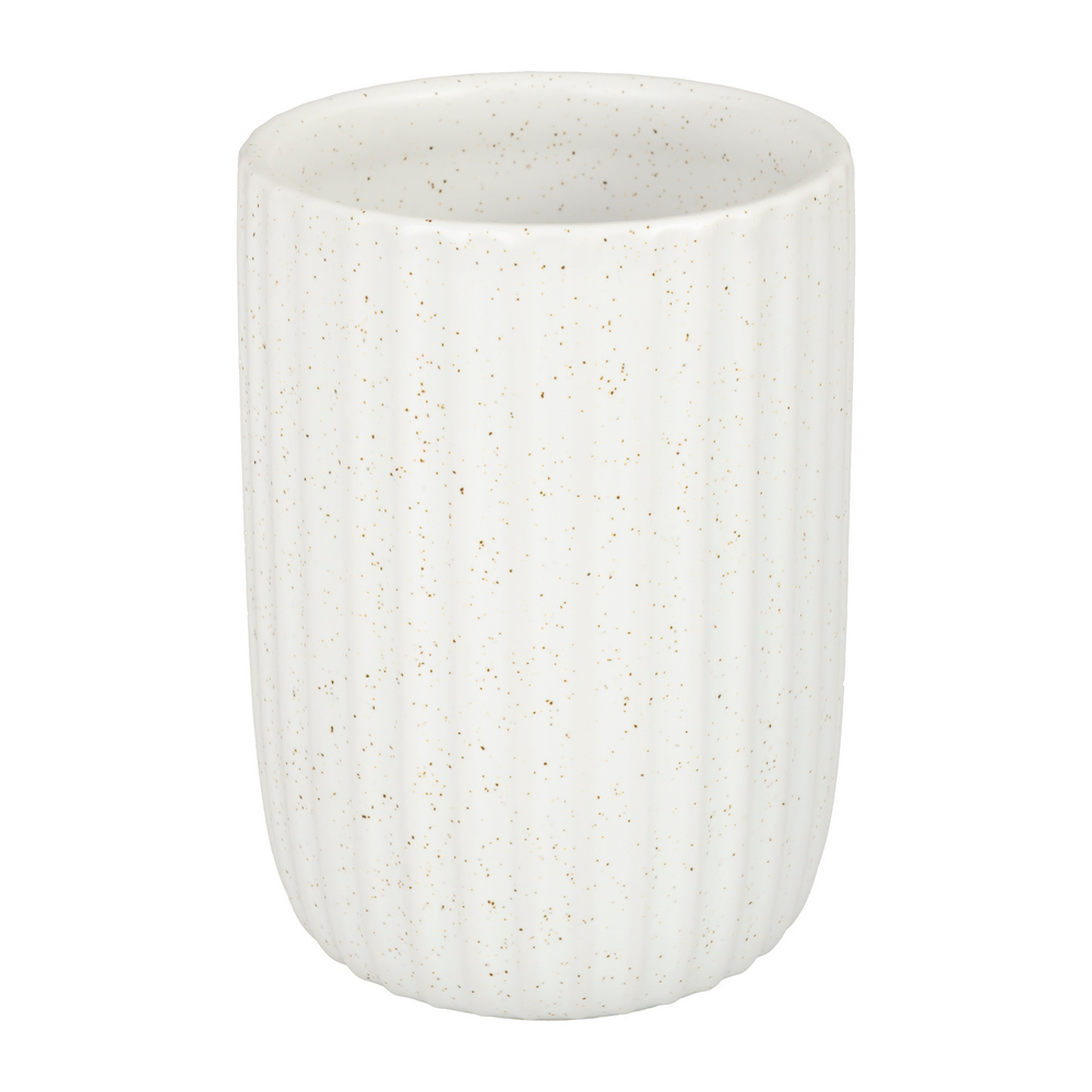 Kubek na szczoteczkiIndia to elegancki i praktyczny element wyposażenia łazienki, wykonany z wysokiej jakości kamionki. Biała powierzchnia z delikatnym, subtelnym nakrapianiem nadaje mu naturalny i ponadczasowy charakter, który doskonale wpisuje się w aranżacje nowoczesne, klasyczne oraz skandynawskie.