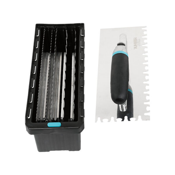 W skrzynce z systemem Drain (z systemem odpływowym) znajdziesz sześć pac 280 x 115 mm z różnymi zębami: