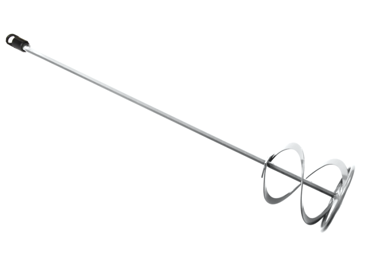 Spiralna geometria łopatek: Specjalnie wyprofilowana spirala wymusza ruch masy z dołu do góry. Takie rozwiązanie pozwala na skuteczne podrywanie ciężkich składników zaprawy z dna wiadra i ich dokładne połączenie z wodą, co eliminuje powstawanie suchych grudek.