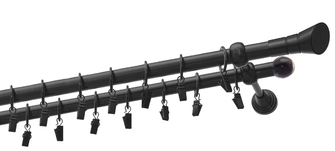 Karnisz podwójny fi19 zakończenie COSMO kolor czarny malowany 2,5mb
