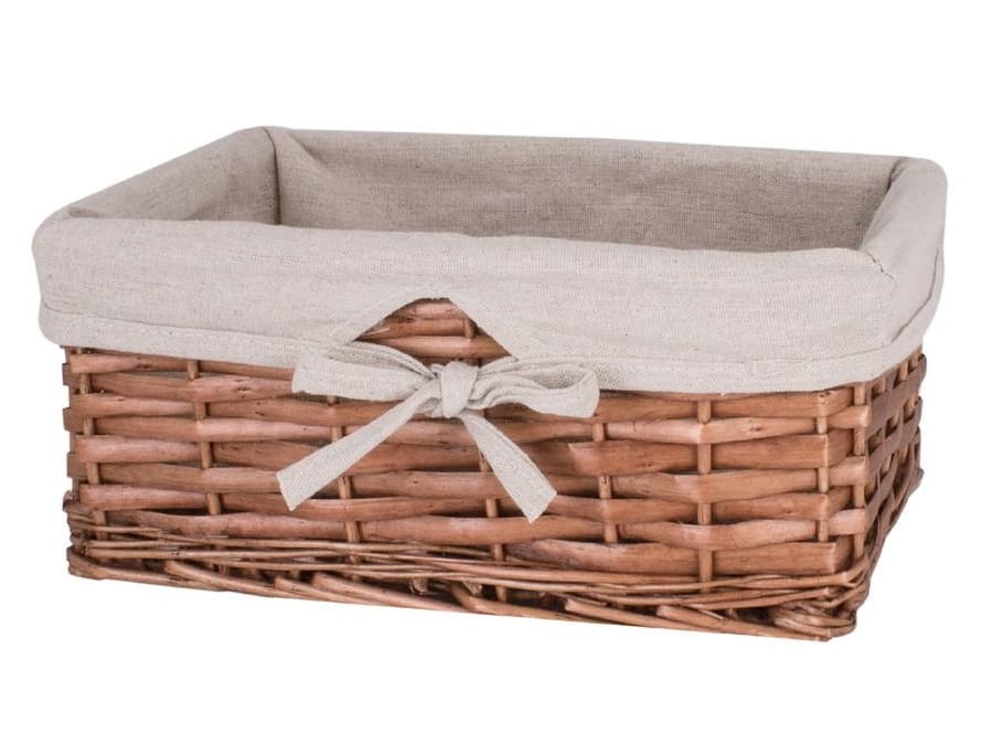 Średni, wiklinowy koszyk w kolorze brązowym . W środku obszyty bawełnianym płótnem. Idealnie sprawdzi się na przechowywanie drobiazgów w twojej łazience.