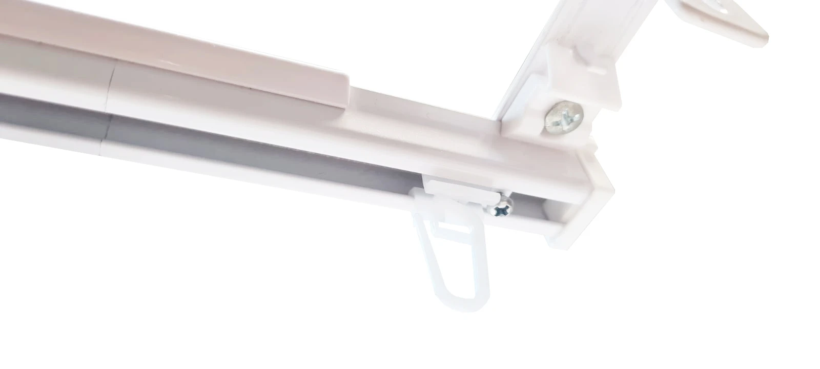 Swobodny przesuw: Specjalnie zaprojektowana konstrukcja łącznika sprawia, że agrafki i żabki przesuwały się lekko i bez zacięć na całej długości połączonych szyn.