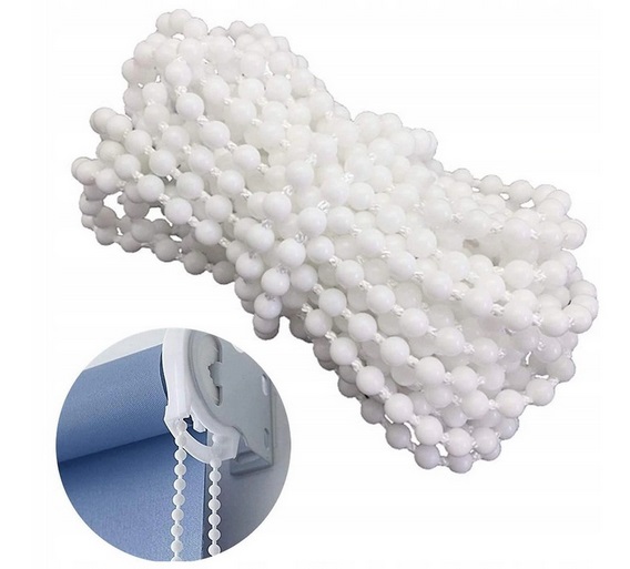 Biały łańcuszek operacyjny w formie pętli to uniwersalny element sterujący, który pasuje do większości standardowych mechanizmów rolet materiałowych, rzymskich oraz systemów typu dzień-noc. Dzięki klasycznej bieli i gładkiej strukturze koralików, łańcuszek dyskretnie wtapia się w ramę okna, nie odciągając uwagi od dekoracyjnej części rolety. Solidne wykonanie z wysokiej jakości tworzywa sprawia, że koraliki są odporne na rozciąganie i nie tracą swojego koloru pod wpływem promieni słonecznych.