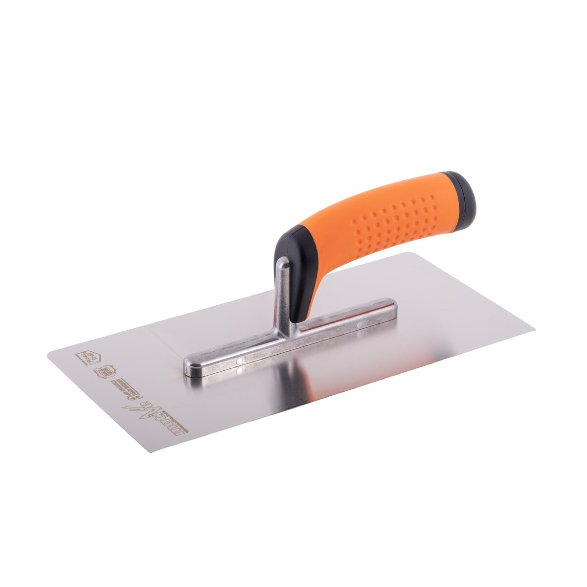 Kwasoodporna stal nierdzewna (0,7 mm): Odpowiednia grubość blatu zapewnia optymalną sztywność, a kwasoodporność chroni narzędzie przed agresywnym działaniem chemii budowlanej. Stal ta nie wchodzi w reakcję z materiałem, dzięki czemu nie pozostawia ciemnych śladów na jasnych masach.