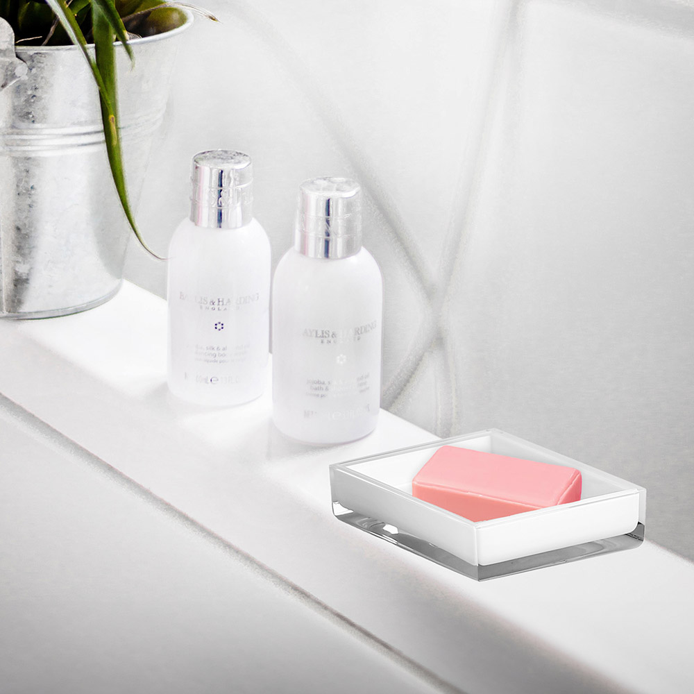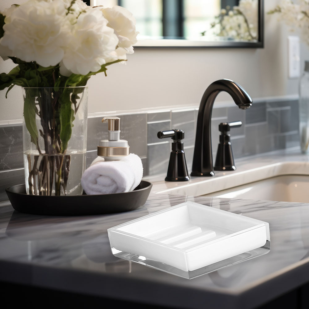 Trwałość i łatwość czyszczenia - wykonana z solidnych materiałów, mydelniczka jest odporna na wilgoć i bardzo łatwa do utrzymania w nieskazitelnej czystości – wystarczy przetrzeć ją wilgotną szmatką, aby odzyskała swój blask.