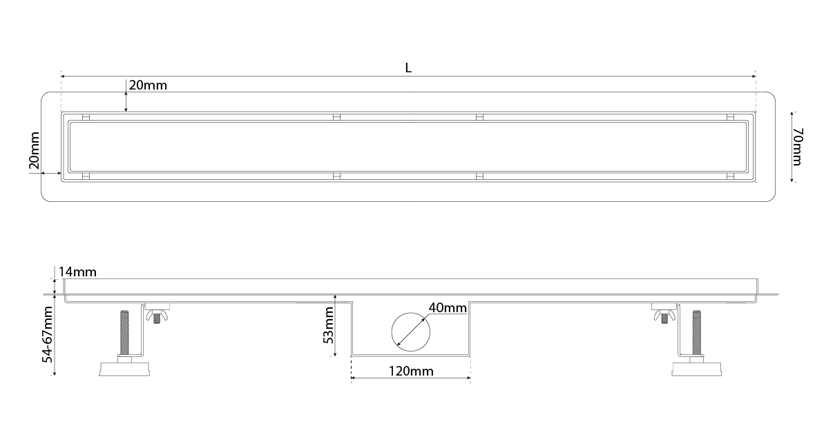 Prosta instalacja: nóżki ułatwiające poziomowanie odpływu (regulacja wysokości pozwala na stabilny montaż do głębokości nawet 80 mm)