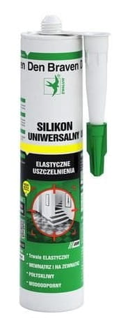 Den Braven Silikon Uniwersalny to jednoskładnikowy, trwale elastyczny silikonowy kit uszczelniający z octowym systemem utwardzania przeznaczony do uszczelnień budowlanych. Tworzy trwale elastyczną, gładką, połyskliwą, wodoodporną, szczelną i odporną na odbarwienia fugę. Bardzo dobrze przyczepny do szkła, ceramiki, porcelany, lakierowanego drewna, powierzchni szkliwionych, glazurowanych i emaliowanych.