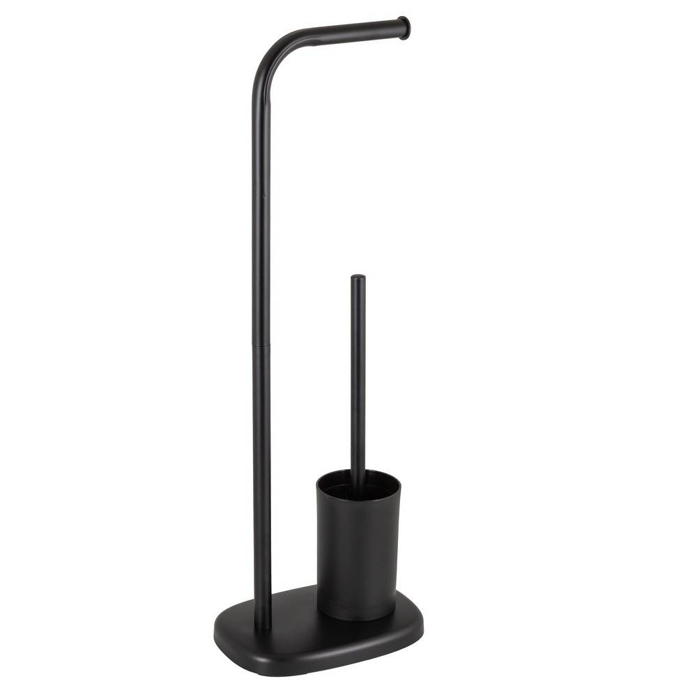 Stojak łazienkowy wykonany jest ze stali malowanej na czarno, co zapewnia trwałość oraz odporność na działanie wilgoci. Minimalistyczna, jednolita kolorystyka sprawia, że model doskonale wpisuje się w nowoczesne, loftowe i industrialne aranżacje łazienek.