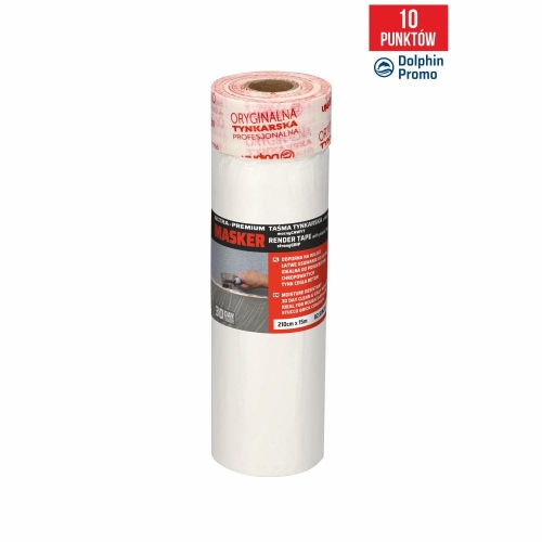 Jeśli planujesz tynkowanie lub malowanie elewacji, ten produkt to Twój najlepszy sprzymierzeniec. Masker tynkarski został stworzony do zadań specjalnych – bez problemu trzyma się tam, gdzie zwykłe taśmy zawodzą: na tynku, cegle, betonie czy kamieniu. Dzięki mocnej taśmie tynkarskiej połączonej z szeroką folią, jednym ruchem zabezpieczasz okna, drzwi czy fragmenty ściany przed zachlapaniem ciężką masą tynkarską. Ten produkt jest wyjątkowo odporny na uszkodzenia mechaniczne, więc nie musisz się martwić, że paca czy wałek go rozerwą podczas intensywnej pracy.