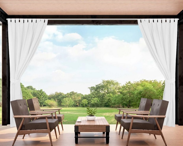 - Zasłona jest wykonana z wodoodpornego materiału odpornego na czynniki zewnętrzne